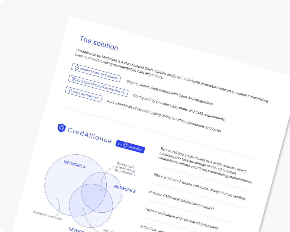 CredAlliance is powered by Medallion, the NCQA-certified CVO trusted by 300+ healthcare organizations to support enrollment and credentialing workflows.
